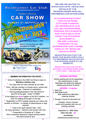° Entry of vehicles to the 2025 Car Show is open to