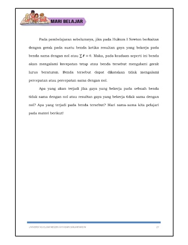 Pada pembelajaran sebelumnya, jika pada Hukum I Newton berkaitan