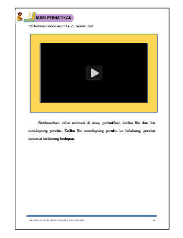 Perhatikan video animasi di bawah ini! Berdasarkan video animasi di atas, perhatikan ketika Rio dan Ica mendayung perahu. Ketika Rio mendayung perahu ke belakang, perahu tersenut terdorong kedepan. UNIVERSITAS ISLAM NEGERI ANTASARI BANJARMASIN 39