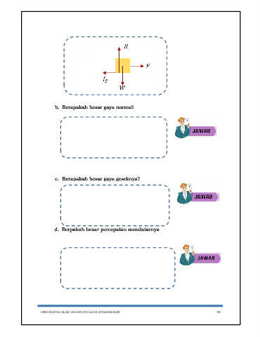 b. Berapakah besar gaya normal! c. Berapakah besar gaya geseknya? d. Berpakah besar percepatan mendatarnya UNIVERSITAS ISLAM NEGERI ANTASARI BANJARMASIN 49