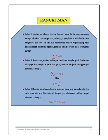 disebut dengan Hukum Kelembaman. Sehingga Hukum I Newton dapat dirumuskan