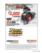 *Customer Cash offer good on select 2016 and prior year models models between 10/7/16 to 12/28/16. AS LOW AS 0% APR FOR 60 MONTHS: **Rate of 0%, 4.99%, 7.99% or 12.99% will be assigned. Examples of monthly payments over a 60-month term at a 0% rate: $16.67 per $1000 financed; and at a 12.99% rate: $22.75 per $1000 financed. Programminimumamountfinancedis$2,500andminimum0%-10%downpaymentrequired. Rateanddownpaymentbasedoncreditapprovalcriteria. Offerissubjecttocredit approval by Synchrony Bank. Offer cannot be combined with Customer Cash.Dealer remains responsible for complying with all local and state advertising regulations and laws. Product and specifications subject to change without notice. Professional rider on closed course under controlled conditions. Always wear an approved helmet, eye protection and protective clothing. Ride responsibly and always ride within your capabilities, allowing time and distance for maneuvering, and respect others around you. Know the conditions. Observe all state and local laws. Don’t drink and ride. ©2016 Yamaha Motor Corporation, U.S.A. All rights reserved • Yamaha-Snowmobiles.com
