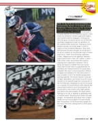 sessions, he would conclude the qualification rounds gleaming with positivity. Positioned in a sound manner for the heat race sector of the show, he looked to load the gate with engine, and holeshot device engaged. Clicking the 450 into gear, he would launch out of the hole, and begin pegging through the gearbox, as the speedometer would rise. Hoping to move forward quickly, he would begin to set his sights on that of Marvin Musquin. Back and forth across the start straight, he would be in an all out assault as he railed the tops of these bowl turns, never once showing a glimpse