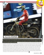 his rhythm section etiquette, and whoop technique. It would then be put into action throughout the heat race, as his start would solidify him in solid position to begin. Putting his best effort forward, he could be seen soaring over the “SX” triple in the middle, whipping the chassis to the left, to sweep the following right-hander. In one swift motion, nearly clipping the inside hay bale, he would begin to stretch the gap on Cameron McAdoo. Looking to press forward, he would be on a hunt for the checkered flag, knowing the real work would come shortly there after. And as the moto would end, he would take fourth overall. With all of the lights upon him, the main would then be underway, and he would feel a certain level of execution come over him. No move- ment on this slippery Glendale surface would be wasted, and as he fought within the midst of the top ten, every rut, whoop, and mogul would be conquered with immense precision. Adjusting the clutch play over one of the triples on the far side, he would then take a glance over to see McAdoo again mid-race. Riding a bike that was rather wide, his rear tire would begin to draw lines in the dirt, crossing off lanes in which the opposition couldn’t cross. And although a bold strategy, weaving in and out of this layout, it would reap dividends; as he would hold on for tenth on the evening.