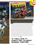 inger. And still residing in fourth once all was said and done, he knew that he was about to “unleash the beast” so to speak, once the main event would com- mence. Twisting the throttle all the way down the start straightaway, he would manage to hit the green flag in fourth place. Pacing the likes of Marvin Musquin in front of him, his sense of urgency would kick in around lap five, and he would make his way into podium contention. Never one to settle, Baggett would inherit second at the misfortune of JASON ANDERSON, who would lay in the red Arizona soil. With Anderson now having a bit of a gap, many seemed to think