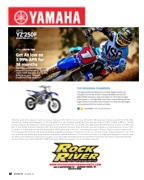 *Monthly payments required. Valid on amount financed of $7,000 or more of new 2012-2017 Motorcycles, Scooters and 2012-2016 ATVs and Side-by-Sides made between 7/1/16 and 9/30/16 on your Yamaha Installment loan account. Rate of 3.99%, 6.99%, 9.99% or 13.99% will be assigned. Examples of monthly payments over a 36-month term at a 3.99% rate: $29.52 per $1000 financed; and at a 13.99% rate: $34.17 per $1000 financed. Minimum 0%-10% down payment required. Rate and down payment based on credit approval criteria. Offer is subject to credit approval by Synchrony Bank. Offer good only in the U.S., excluding the state of Hawaii. Dealer remains responsible for complying with all local and state advertising regulations and laws. Professional rider on a closed course. Dress properly for your ride with a helmet, eye protection, long sleeves, long pants, gloves and boots. Do not drink and ride. It is illegal and dangerous. Yamaha and the Motorcycle Safety Foundation encourage you to ride safely and respect the environment. For further information regarding the MSF course, please call 1-800-446-9227. ©2016 Yamaha Motor Corporation, U.S.A. All rights reserved.