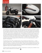 The subframe is a double-downtube/double-cradle which provides the mount for the radiator. Tubular steel components make up the frame as well as the subframe, and a steel swingarm with a rectangu- lar cross-section completes the innards of the Street Rod. The improved swingarm was lengthened to accommodate the increase in tire-width as well as the increase in rear suspension travel of 4.6 inches at the axle. The front end is complete with a pair of bold, blacked out 43mm forks which suit the rest of the bike’s glaring demeanor. Its fitted with cast, 17-inch wheels front and rear with a 160/60 on the rear and a 120/70 up front. The Michelin Scorcher 21 radials to assist a 37.3-degree lean angle on the right and a 40.2-degree lean angle to the left. 300mm front brake discs are secured by twin pot calibers which provide more than enough stopping power, in addition to the option of ABS. The steer- ing angle is short at just 27 degrees with a 3.9-inch trail; a far cry from Harley-Davidson’s normal figures in this department.