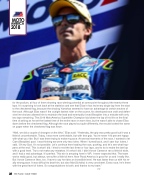 for the podium, all four of them showing race winning potential at some point throughout the twenty-three laps. It’s surprising to look back at the statistics and see that Elias in fact led every single lap from the start to the checkered flag, because the chasing Yamahas seemed to have an advantage at certain sectors of the track. Although Elias wasn’t the outright fastest rider on the course, his developed race craft and defen- sive line choices allowed him to maintain the lead and eventually forced Beaubier into a mistake with only two laps remaining. The 2016 MotoAmerica Superbike Champion laid down the lap of his life on the final time of asking as he set the fastest time of the entire race on worn tires, but he wasn’t able to chase Elias down before the checkered flag. Although the race played out quite differently, the results looked the same on paper when the checkered flag was flown.