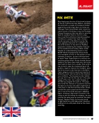to assist Team Great Britain in a second con- secutive podium finish. Anstie showed decent speed in the Open class heat race, but a poor start held him back from a better finish and he was forced to take the checkered flag in 9th position, eager to improve for Sunday’s races. He hit the track for the first time in the MX2 + Open category, and his result was heavily af- fected by a poor start as well as the treacher- ous conditions. The Husqvarna rider battled his way from 13th into the top ten in the early stages of the moto, but a slight mistake on the fifth lap dropped him back to 17th place and ruined his chances of a positive result for the team as he was only able to fight back to 13th place. In the third and final moto, Anstie showed the same speed and form that put him on top of the world last year in Matterly Basin, showing a high level of comfort in his riding as well as limiting his mistakes. He was running the same pace as eventual 3rd place finisher, Gautier Paulin, but he was forced