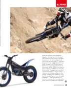 Although it’s only in the conceptual stages of development, the amount of time and money that Yamaha has been dumping into the electric market will surely pay off in the long run. The propri- etary technology and development can easily serve as a cross-over between their continually burgeoning Power As- sist bicycle line as well as their newly ini- tiated endeavors in the world of electric motorcycles. There are many practical uses for this particular model of bike -- a relatively risk-free way to learn to ride without disturbing the neighbors, cross- training for an enduro or hare-scramble competitor, a quick and easy way to enjoy the outdoors, or an avenue to the bright lights of professional competiion.