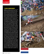 the surprise factor was far removed from his performances on Sunday for the final motos of the weekend. The KTM rider only managed two podium finishes throughout the entire year of racing in the MXGP World Champion- ship, but his confidence and determination seemed unphased by that statistic. Colden- hoff was electric out of the gate all weekend long, either pulling the holeshot or starting in second position in all of his motos. Once he hit the front of the pack, it was game over for the rest of the competition as he utilized his incredibly smooth riding style and unparal- leled technique in order to dominate the chal- lenging RedBud circuit. It was apparent that his confidence grew throughout the weekend as he decided to jump the world-renowned Larocco’s Leap for the first time of the entire weekend on the parade lap of the final moto, continuing to do so all the way until the final lap. Coldenhoff made winning look effortless, taking advantage of the favorable conditions in order to put Team Netherlands on the rostrum for the eleventh time in the history of the event. Despite the team’s shortcomings