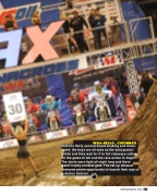 With the thirty second board shaking and illumi- nated, the boys are all eyes as the anticipation builds and they wait for it to fall sideways calling for the gates to fall and the race action to begin... The starts were tight all night long and there wasn’t really an ideal gate. The set up allowed everyone prime opportunity to launch their way to holeshot oblivion.