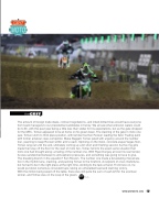 The amount of foreign trade deals, contract negotiations, and inked dotted lines would have everyone from team managers to our presidential candidates in frenzy. We all saw what unknown waters could do to Eli, with this past year being a little less than stellar for his expectations, but as the gate dropped for the MEC, Tomac appeared to be at home on his green bean. The clashing of the gate in moto one saw, Tomac storm to third place position, with familiar foe Ken Roczen leading the field. Trading paint with former amateur class competitor, Blake Baggett, Tomac juked with urgency around the number four, yearning to keep Roczen within arm’s reach. Spinning on the moist, concrete-esque Vegas floor, Tomac rang out until the end, ultimately coming up a bit short and finishing second. As the ring girls made their way off the floor for the start of moto two, Tomac fell into the exact same situation that moto one had brought along; a trailing of the number one. With Ryan Dungey all over his rear fender, he was sandwiched between to atmospheric pressures, and something was going to have to give. The breaking branch in the equation? Ken Roczen. The number one made a devastating miscalcula- tion in the rhythm lane, crashing, and pushing Tomac to the forefront. A recipient of one’s misfortune, but he had to be in the right place at the right time, sticking to the task at hand. From here on, he would put down numerous consistent laps, taking an unheralded lead and claiming victory.