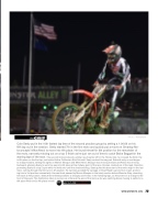 to charge forward, setting his sights on Marvin Musquin and Mike Alessi. Musquin was moving forward and Alessi was moving backward, allowing Seely to work his way into 6th place at the midway point of the race. Roczen crashed out of the lead, therefore promoting Seely to a top 5 spot which he held onto until the checkered flag. Seely pulled his best start of the entire night in the last moto, coming through the first turn in 4th position. He narrowly avoided the carnage of Chad Reed’s second turn crash, promot- ing him to 3rd position momentarily. He was block passed by Marvin Musquin in the twisty section before Monster Alley, demoting him back to 4th position. Seely then forfeited positions to Dungey and Tomac in the following laps, as they were on a charge to the front of the pack. The Californian rider in red ran out of time at the end of the moto as he was catching Alessi, having to settle for a 6th place finish and a 4th place overall.