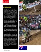 the season at the ripe age of eighteen years old. Dean Ferris would’ve been the easy pick to represent Team Australia at RedBud, but the Australian SX Championship posed a scheduling conflict, therefore allowing Evans the opportunity to represent his country at the seventy-first Motocross des Nations. It proved to be the right move by Michael Byrne and the rest of Team Australia as the teenager showcased some impressive speed through- out the weekend of racing, helping Australia to fourth place overall as a result of all three races. He pulled a decent start on the edge of the top ten in the second moto and overcame a minor tip over in order to come away with