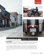 in favor of the previously integrated driving lights and chrome faceplate from previ- ous models, housing a much more simple LED headlamp and bullet-style LED turn signals. >>