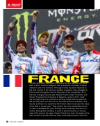 ing the beginning of an impressive winning streak that has spanned the last five years. It’s still a far cry from the American’s thirteen race record, but there’s no doubt that the French riders have been the class of the field in recent years. They weren’t the most outstanding bunch or riders at RedBud this year, but they were extremely solid and con- sistent, limiting their mistakes in order to put themselves on the top step of the podium yet again. Gautier Paulin has been the staple of the team and the only rider that has been continually present in their five
