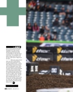 and was looking poised to move upwards toward the lead. Looking like a different rider from the heat race he challenged Factory Yama- ha’s Chad Reed for second place. The pass almost seemed inevitable until lap by lap he found himself just a step behind 2nd place Reed. On the last lap while closing in for the pass on Reed, Tomac washed out in a simple bowl turn. He was able to get up quickly, but not in time for RCH Suzuki’s Ken Roczen to sneak into the last podium posi- tion. Although respectable, the 4th place finish was not where Tomac wanted to be.