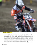 years around Utah and her results started to get better and better. With the support of her family, they were able to make it to the World Minis in 2011. She has been at it ever since and has been putting in some solid results. The Allred’s have traveled to many states chasing Tayler’s dream and she has earned 7 national titles in the last 5 years. Tayler is motivated and excited to keep the number growing. Not only does she consistently finish in the top 5 in her respective girl’s classes, but she is very competitive in the boy’s classes as well. She even qualified for 85 (9-11) at Loretta’s last year and hopes to be competitive in the class this year. Lately, womens motocross has been under the radar and not really worth the time and effort that some put in to it, but with girls like Tayler, women’s motocross may get back to what it once was and be part of the show in the national pro series. Look for Tayler to continue her speed and turn some heads in all amateur nationals to come.