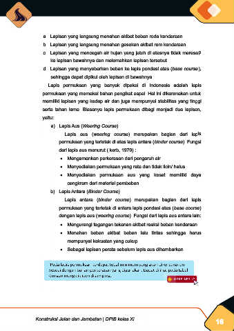 a. Lapisan yang langsung menahan akibat beban roda kendaraan.