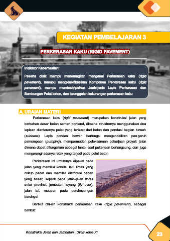 Peserta didik mampu menerangkan mengenai Perkerasan kaku (rigid