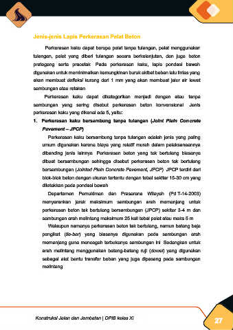 bersambungan (Jointed Plain Concrete Pavement, JPCP). JPCP terdiri dari