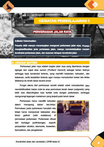 konstruksi perkerasan jalan, dan susunan tahapan konstruksi jalan.