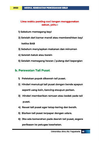 4) Rawat tali pusat agar tetap kering dan bersih.