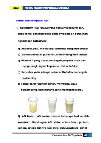 1) Kolostrum : ASI khusus yang berwarna kekuningan,