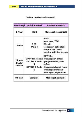 Umur Bayi Jenis imunisasi Manfaat Imunisasi
