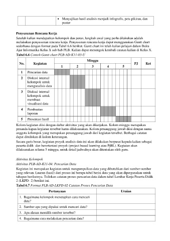 sederhana dengan format pada Tabel 6.6 berikut. Gantt chart ini telah kalian pelajari dalam Buku