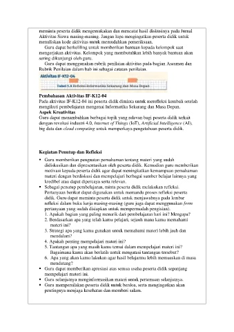 Pada aktivitas IF-K12-04 ini peserta didik diminta untuk merefleksi kembali setelah
