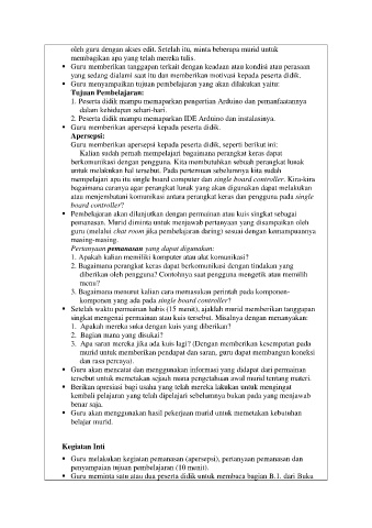 pemanasan. Murid diminta untuk menjawab pertanyaan yang disampaikan oleh