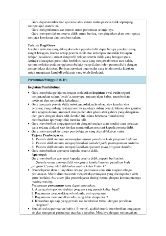 mengerjakan aktivitas. Berikan apresiasi bagi usaha yang telah mereka lakukan