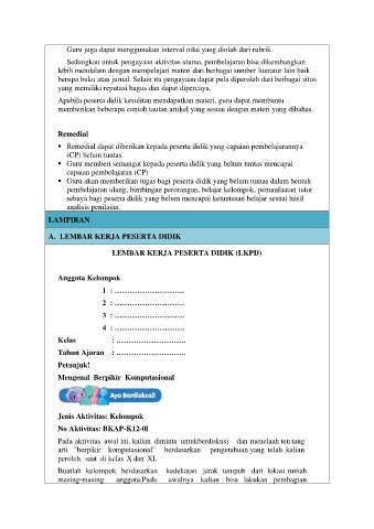 ▪ Remedial dapat diberikan kepada peserta didik yang capaian pembelajarannya