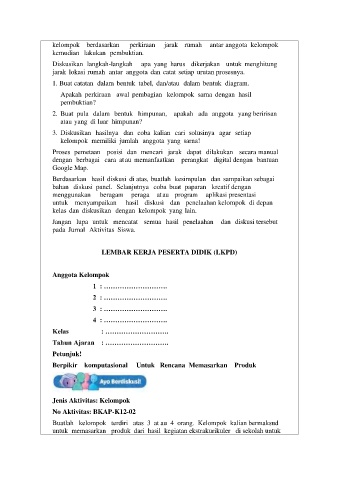 jarak lokasi rumah antar anggota dan catat setiap urutan prosesnya.