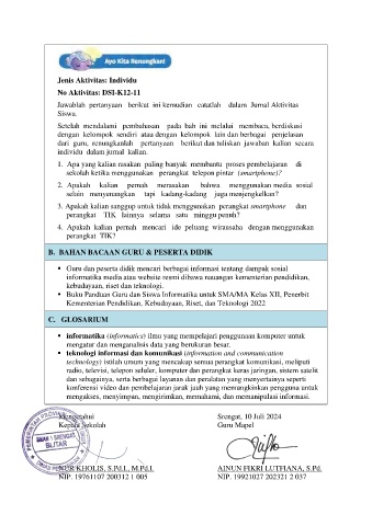 Jawablah pertanyaan berikut ini kemudian catatlah dalam Jurnal Aktivitas