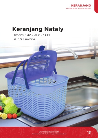 KERANJANG KERANJANG, TEMPAT SURAT Keranjang Nataly Dimensi : 42 x 31 x 27 CM Isi : 1.5 Lsn/Dos 13 Terbuat dari plastik berkualitas tinggi, awet dan tahan lama