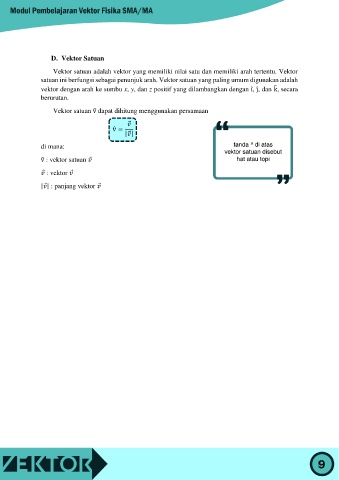 Vektor satuan adalah vektor yang memiliki nilai satu dan memiliki arah tertentu. Vektor