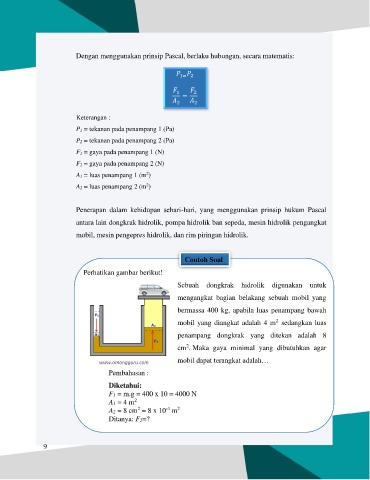 antara lain dongkrak hidrolik, pompa hidrolik ban sepeda, mesin hidrolik pengangkat