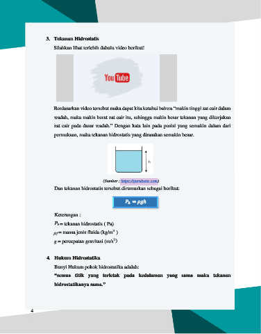 Dan tekanan hidrostatis tersebut dirumuskan sebagai berikut: