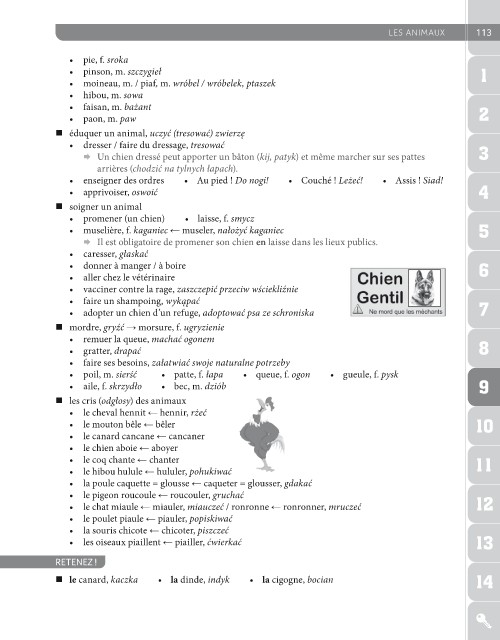 • poil, m. sierść • patte, f. łapa • queue, f. ogon • gueule, f. pysk