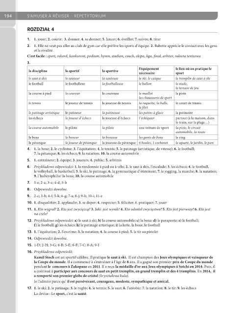 12. Przykładowe odpowiedzi: a) le saut à ski; b) la course automobile; c) la boxe; d) le parapente; e) le football;