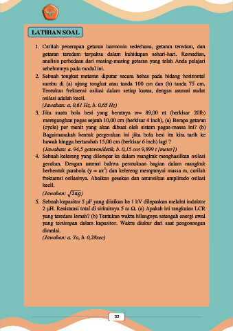 (Jawaban: a. 94,5 getaran/detik, b. 0,15 cos 9,899 t [meter])
