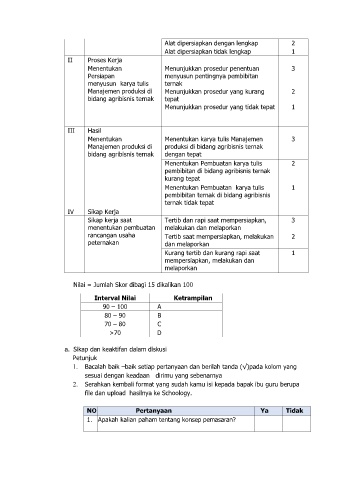Nilai = Jumlah Skor dibagi 15 dikalikan 100