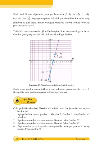 Garis lurus tersebut menunjukkan semua selesaian persamaan 4x − y = 5.