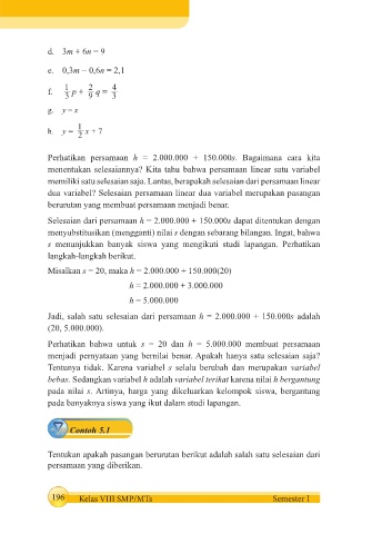 Jadi, salah satu selesaian dari persamaan h = 2.000.000 + 150.000s adalah