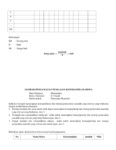 1. Kurang terampil jika sama sekali tidak dapat menerapkan konsep/prinsip dan strategi pemecahan masalah