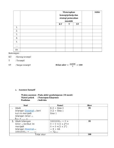 Waktu asesmen : Pada akhir pembelajaran (10 menit)