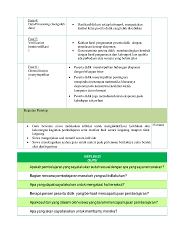 Guru bersama siswa melakukan refleksi untuk mengidentifikasi kelebihan dan 15 menit